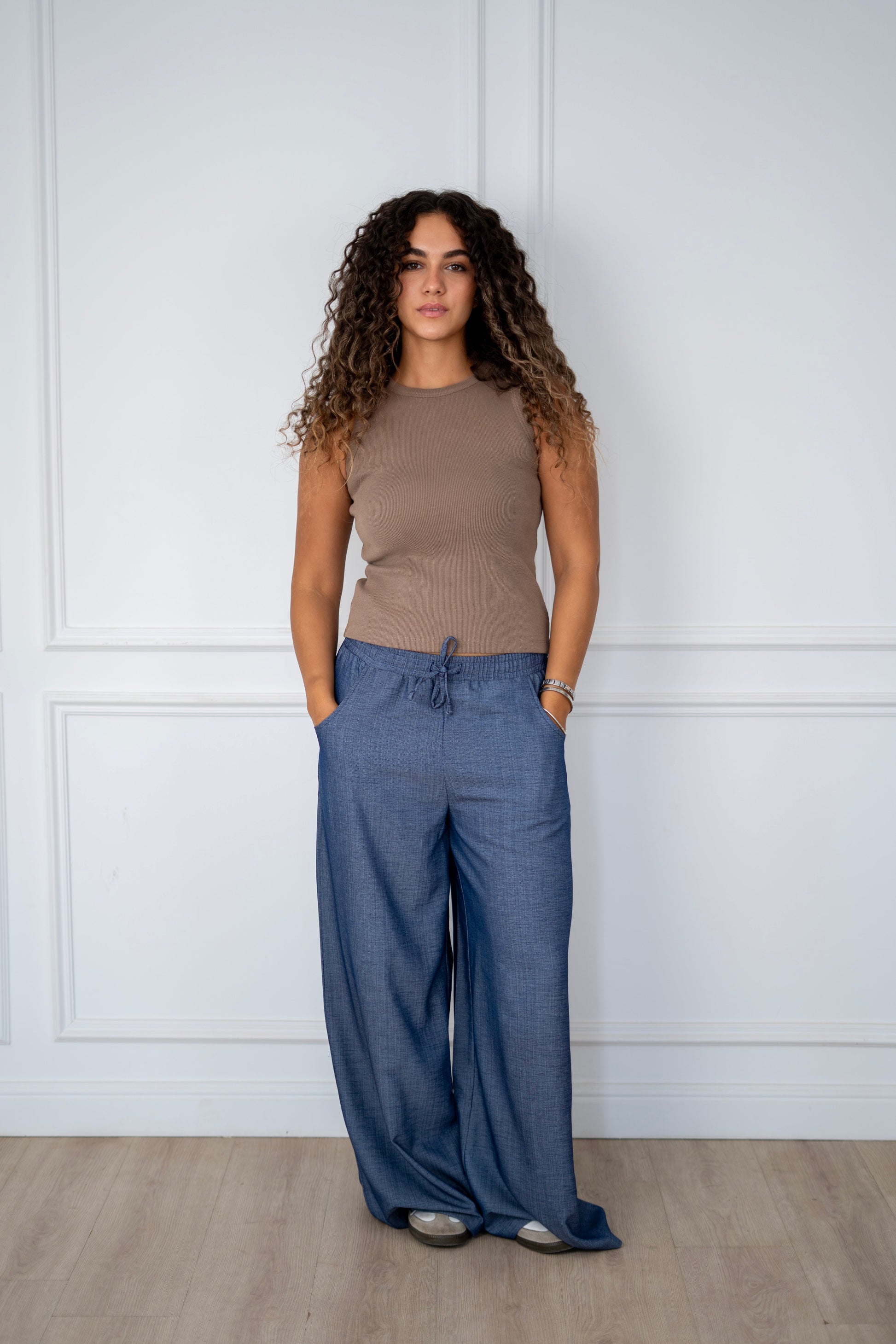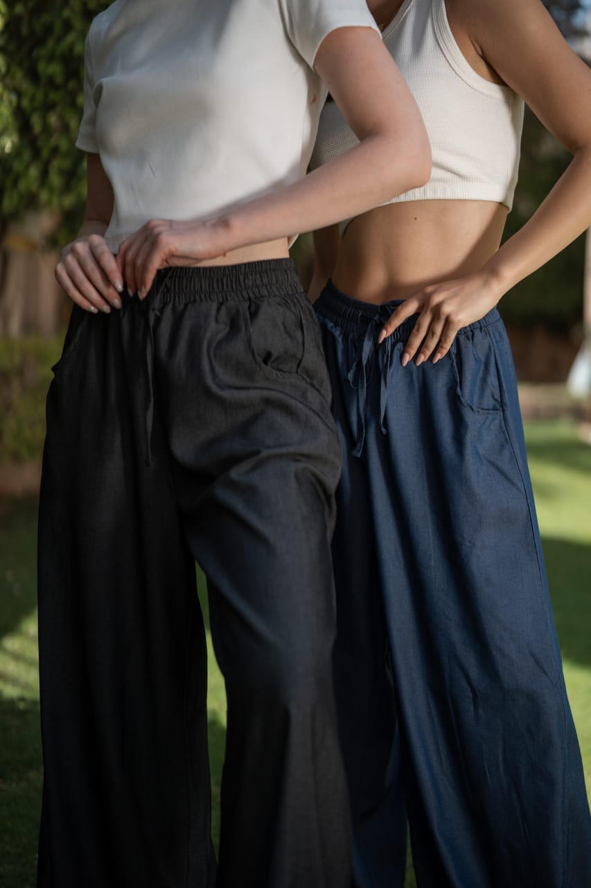 Wide-leg very light denim. Soft and breezy suitable for hot summer days. Adjustable waist.